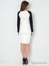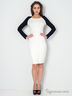 Трикотажное платье футляр, плотно прилегающего силуэта, длиной выше колена. Основным акцентом платья выступает рукав – реглан контрастного к основному цвету. По центру спинки расположена потайная молния, по низу изделия – шлица.