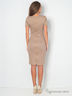 Трикотажное платье "футляр", длиной до колена. Прилегание по полочке обеспечивают рельефы, выходящие из проймы, на спинке талевые вытачки. По среднему шву спинки по всей длине расположена золотая молния.