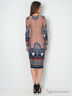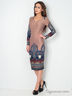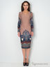 Трикотажное платье футляр, приталенного силуэта, длиной ниже колена. Платье с плавным V-образным вырезом и длинным рукавом. По центру спинки расположена потайная молния.