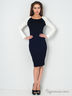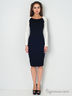 Трикотажное платье футляр, плотно прилегающего силуэта, длиной выше колена. Основным акцентом платья выступает рукав – реглан контрастного к основному цвету. По центру спинки расположена потайная молния, по низу изделия – шлица.
