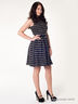 Теплое шерстяное платье без рукавов, на хлопковой подкладке. По лифу платья на полочке расположены рельефы, на спинке талиевые вытачки. Юбка собрана в пышную сборку. По спинке расположена декоративная металлическая молния.