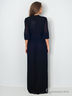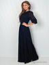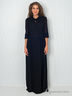 Шифоновое летнее платье на подкладке, длиной макси. Горловина декорирована контрастной планкой, завязывающейся на полочке бантом. Комфортное прилегание обеспечивают нагрудные вытачки и молния в боковом шве. Рукав длиной три четверти собран на манжет, застегивающийся на пуговицу.