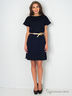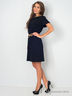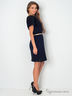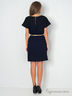 Платье А-образного силуэта из плотного футера. Горловина декорирована золотой тесьмой заплетенной в косичку. На спинке в среднем шве расположена декоративная золотая молния с треугольным пуллером. По подолу в боковых швах выполнены небольшие разрезы.