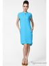 Платье – рубашка, свободного кроя, длиной до середины бедра. Воротник стойка застёгивается на пуговицы и переходит в рубашечную планку. Из проймы через всё изделие проходят рельефы, декорированные потайными карманами, расположенными по линии бёдер. Дополнением в качестве подкладки является трикотажное платье – майка телесного цвета