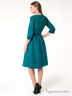Платье с пышной юбкой в складку, приталенного силуэта, длиной чуть ниже колена. Контрастная планка, пояс и манжеты выступают акцентами модели. Прилегание обеспечивают рельефы выходящие из проймы. Потайная молния расположена по центру спинки.