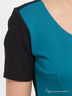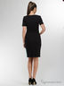 Трикотажное платье футляр из мягкого трикотажа, длиной выше колена. По полочке расположены нагрудные вытачки переходящие в талиевые. В боковом шве расположена потайная молния. В комплекте идет пояс на кнопках выполненный из основной ткани.
