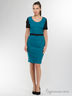 Трикотажное платье футляр из мягкого трикотажа, длиной выше колена. По полочке расположены нагрудные вытачки переходящие в талиевые. В боковом шве расположена потайная молния. В комплекте идет пояс на кнопках выполненный из основной ткани.