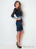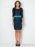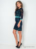 Кружевное трикотажное платье футляр, приталенного силуэта, длиной выше колена. Акцентом изделия выступает контрастный пояс и манжеты на рукавах. По центру спинки расположена декоративная молния, по низу – шлица.