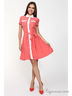 Платье - рубашка, приталенного силуэта, длиной чуть выше колена. Рукав втачной, рубашечный, на манжете. Посадку по лифу обеспечивают талиевые вытачки, а комфортное прилегание достигается за счёт резинки, втаченной по всей линии талии. Воротник-стойка, с круглым рубашечным воротником, переходит в планку, застёгивающуюся на пуговицы.