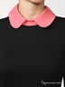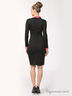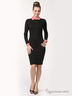 Трикотажное платье футляр, приталенного силуэта, длиной до середины колена. Комфортное прилегание обеспечивают талиевые вытачки на спинке и полочке. Акцентом изделия выступают яркие манжеты и воротник «peter pan». По центру спинки расположена потайная молния.