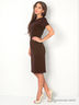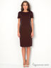 Трикотажное платье футляр, длиной до колена. Прилегание по полочке обеспечивают рельефы, выходящие из проймы, на спинке талиевые вытачки. По среднему шву спинки по всей длине расположена золотая молния.