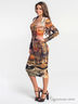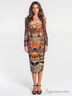 Трикотажное платье футляр, длиной ниже колена. Лиф изделия оформлен элегантным вырезом - каре. В боковом шве расположена потайная молния. Модель декорирована красивым контрастным принтом.