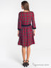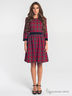 Клетчатое платье отрезное по линии талии, длиной выше колена. Лиф платья притален за счет рельефов выходящих из проймы, юбка собрана в пышную сборку. Рукава длиной три четверти посажены на манжет, совпадающий по цвету с втачным поясом. По центру спинки расположена потайная молния.
