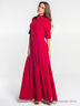 Демисезонное платье длиной в пол, из плотной ткани «Диор», приталенного силуэта. Прилегание на лифе достигается за счёт рельефов, выходящих из проймы. На модели акцентами выступают воротник-стойка, пришивные карманы на груди со встречной складкой и золотые пуговицы, расположенные по центру планки. Приятным функциональным дополнением являются потайные карманы в боковых швах.