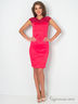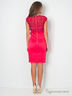 Атласное платье футляр на кружевной кокетке, приталенного силуэта, длиной выше колена. Лиф платья выполнен в корсажном стиле, по юбке платья расположены рельефы. По спинке идет V-образная кружевная вставка, по центру разделенная декоративной золотой молнией. По низу изделия – шлица.