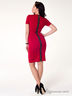 Трикотажное платье "футляр", длиной до колена. Прилегание по полочке обеспечивают рельефы, выходящие из проймы, на спинке талевые вытачки. По среднему шву спинки по всей длине расположена золотая молния.