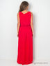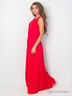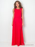 Однотонное платье длиной в пол без рукавов, круглый вырез горловины. Пояс собран на резинку.