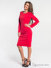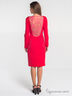 Платье футляр, плотно прилегающего силуэта, длиной выше колена. На полочке платья расположены рельефы переходящие в талиевые вытачки и заканчивающиеся по линии бедер. Спинка декорирована кружевной фигурной вставкой. По низу платья расположена шлица. В боковом шве – потайная молния.