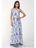 Шифоновое платье приталенного силуэта, длиной в пол. Прилегание по лифу обеспечивают небольшие нагрудные вытачки. Вырез оформлен кантом, переходящим на спинке в завязки. Тонкий текстильный пояс в тон платья.