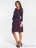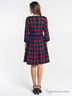 Клетчатое платье отрезное по линии талии, длиной выше колена. Лиф платья притален за счет рельефов выходящих из проймы, юбка собрана в пышную сборку. Рукава длиной три четверти посажены на манжет, совпадающий по цвету с втачным поясом. По центру спинки расположена потайная молния.