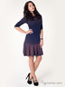 Трикотажное платье, с круглым вырезом горловины и рукавом длиной три четверти. Прилегание по лифу платья на полочке обеспечивают рельефы, на спинке талиевые вытачки. По спинке платья вставлена потайная молния.