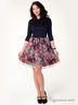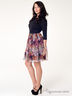 Трикотажное платье, с круглым вырезом горловины и рукавом три четверти. Пышность юбке платья придает второй слой шифоновой сборки. По спинке платья расположена потайная молния.
