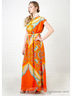 Шифоновое летнее платье в пол, приталенного силуэта. Прилегание по талии достигается за счёт резинки втачанной по поясу. Цельнокроеный лиф платья оформлен вырезом горловины «лодочка».
