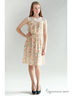 Летнее цветочное шифоновое платье на подкладке, приталенного силуэта, длиной до колена. Лиф платья оформлен однотонной лёгкой кокеткой. Для удобства в боковом шве имеется молния. По центру спинки выполнен разрез – капелька, застёгивающийся на пуговицу.