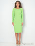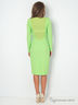Платье футляр, плотно прилегающего силуэта, длиной выше колена. На полочке платья расположены рельефы переходящие в талиевые вытачки и заканчивающиеся по линии бедер. Спинка декорирована шифоновой фигурной вставкой. По низу платья расположена шлица. В боковом шве – потайная молния.