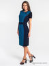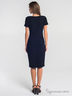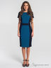 Трикотажное платье с округлым вырезом горловины. Рельефы выходящие из проймы обеспечивают комфортное прилегание по фигуре. По талии на центральной части расположена контрастная планка принтованная вертикальной полоской. В среднем шве по низу спинки расположена шлица.