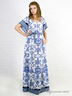 Шикарное лёгкое платье на подкладке, длиной в пол. Лиф платья оформлен глубоким вырезом, переходящим в планку, застёгивающуюся на пуговицы. Комфортное прилегание по талии обеспечивает втачной пояс. В боковом шве расположена потайная молния.