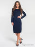 Платье футляр, плотно прилегающего силуэта, длиной выше колена. На полочке платья расположены рельефы переходящие в талиевые вытачки и заканчивающиеся по линии бедер. Спинка декорирована кружевной фигурной вставкой. По низу платья расположена шлица. В боковом шве – потайная молния.