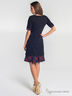 Трикотажное платье с оборкой приталенного силуэта, длиной до середины колена. Основным акцентом изделия является контрастная клетчатая отделка расположенная в виде оборки по низу изделия и рукава.