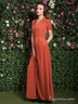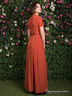 Платье - халат длиной в пол, приталенного силуэта. Рукав втачной, одношовный. Воротник с лацканами переходит в цельнокроеную планку на пуговицах. Прилегание на лифе обеспечивают талиевые вытачки, заканчивающиеся на отрезной линии талии, посаженной для комфорта на резинку. Приятным функциональным дополнением являются потайные карманы в боковых швах.