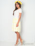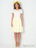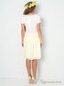 Трикотажное легкое платье, длиной выше колена. Юбка платья двухслойная: нижний слой – основной материал, верхний – перфорированная органза с цветочным орнаментом. В боковом шве – потайная молния.