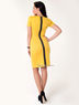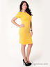 Трикотажное платье "футляр", длиной до колена. Прилегание по полочке обеспечивают рельефы, выходящие из проймы, на спинке талевые вытачки. По среднему шву спинки по всей длине расположена золотая молния.