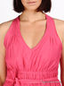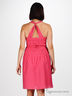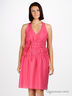 V-образный вырез. Бретельки перекрещиваются на спине. Многорядная резинка на талии и тонкие пояски подчеркнут Вашу фигуру, а открытые плечи и расклешенная юбка сбалансируют пропорции. Застегивается на молнию сбоку.