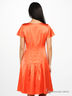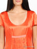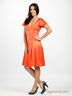Шикарное атласное платье восхитительного ярко-оранжевого цвета с изысканным лоском. Широкая круглая горловина. Короткие рукава с декоративной складкой. Приталенный силуэт. Полочка декорирована складками. Придающими платью изюминку и оригинальность. Легкая шелковистая подкладка. Застегивается на молнию сбоку.