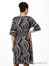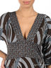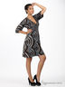 Детали: глубокий V-образный вырез; отрезной лиф с широким втачным поясом; широкий цельнокроеный рукав; декорировано оригинальным принтом