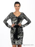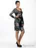 Детали: V-образный вырез; лиф платья двухслойный; длинный рукав, внизу присборен на резинку; дополнено несъемный поясом