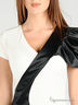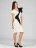 Шикарное и элегантное платье из легкого джерси, прекрасно подчеркивает фигуру. V-образный вырез. Один рукав оригинального кроя выполнен из черного лоснящегося атласа, как и вставка на платье, подчеркивающая изгибы тела. Строгое и изысканное, оно подойдет для самых разнообразных ситуаций - как для пышного праздника, так и для деловой встречи.