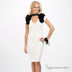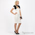 Оригинальное белое платье прямого кроя подчеркнет Ваш индивидуальный стиль и добавит романтичности в образ. Приятная на ощупь трикотажная ткань. Короткий рукав. Полочка декорирована шестью розами из черного шифона.