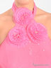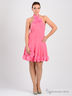 Платье приталенного покроя с бретелью петлей. На горловине и подоле присутствуют декоративные элементы.