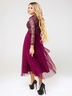 Шикарное вечернее платье Сантафе с плиссированной юбкой-миди. Верх платья украшает гипюр, рукава и кокетка полупрозрачные. Застегивается на декоративную пуговицу по центру спинки. Пояс в комплект не входит. Длина изделия: 119 см. Длина рукава: 52 см. Параметры модели на фото: 85*68*90 см.