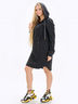 Стильное платье-худи выполнено в спортивном стиле. Капюшон регулируется лентами. По линии талии проходит кулиса. Застегивается на молнию по переду. На полочке карман с клапаном на двух молниях. Эластичные манжеты, один дополнен яркой лентой с надписью. Длина изделия: XS-S 90 см, S-M 92 см, M-L 94 см, L-XL 96 см. Длина рукава: 56 см. Параметры модели на фото: 85*68*90 см.