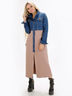 Стильное платье-рубашка Катая создано из комбинации двух материалов. Верх из джинса, застегивается на кнопки. Манжеты рукавов также на кнопках. Воротник отложной, нагрудные карманы с клапанами на кнопках. Нижняя часть платья из футера петли. В боковых швах карманы. Края необработанные. Украшает платье декор-нашивка с логотипом бренда. Длина изделия: 120 см. Длина рукава: 56 см. Параметры модели на фото: 85*68*90 см.