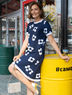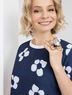 Когда поводы разные. Настроение – переменчивое. Аксессуары не выбираются. Надевайте это А-силуэтное платье с оригинальным подолом. Очертания крупных белых цветов, освежающие планки по краям модели. Теперь – хоть куда.