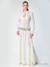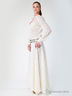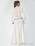Платье женское длиной "в пол" с расклешенной юбкой- "полусолнце". Воротник стояче-отложной. Центральная застежка- поло. Рукав втачной длинный с застегивающейся манжетой. Линия талии занижена. Платье идет в комплекте с поясом из натуральной кожи.