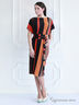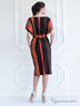 Очаровательное платье с короткими рукавами и округлым вырезом горловины. Модель дополнена поясом на талии и выполнена в яркой, контрастной расцветке. Отличный вариант на каждый день.