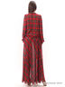 Романтическое платье длиной "в пол", отрезное по линии талии с летящим низом. Воротник платья- стойка. Рукав втачной длинный, низ оформлен манжетой. Юбка расклешенная "полусолнце". Декоративная деталь - съемный бант-галстук. Платье оформлено ручной росписью по ткани. Длина юбки - 100 см.